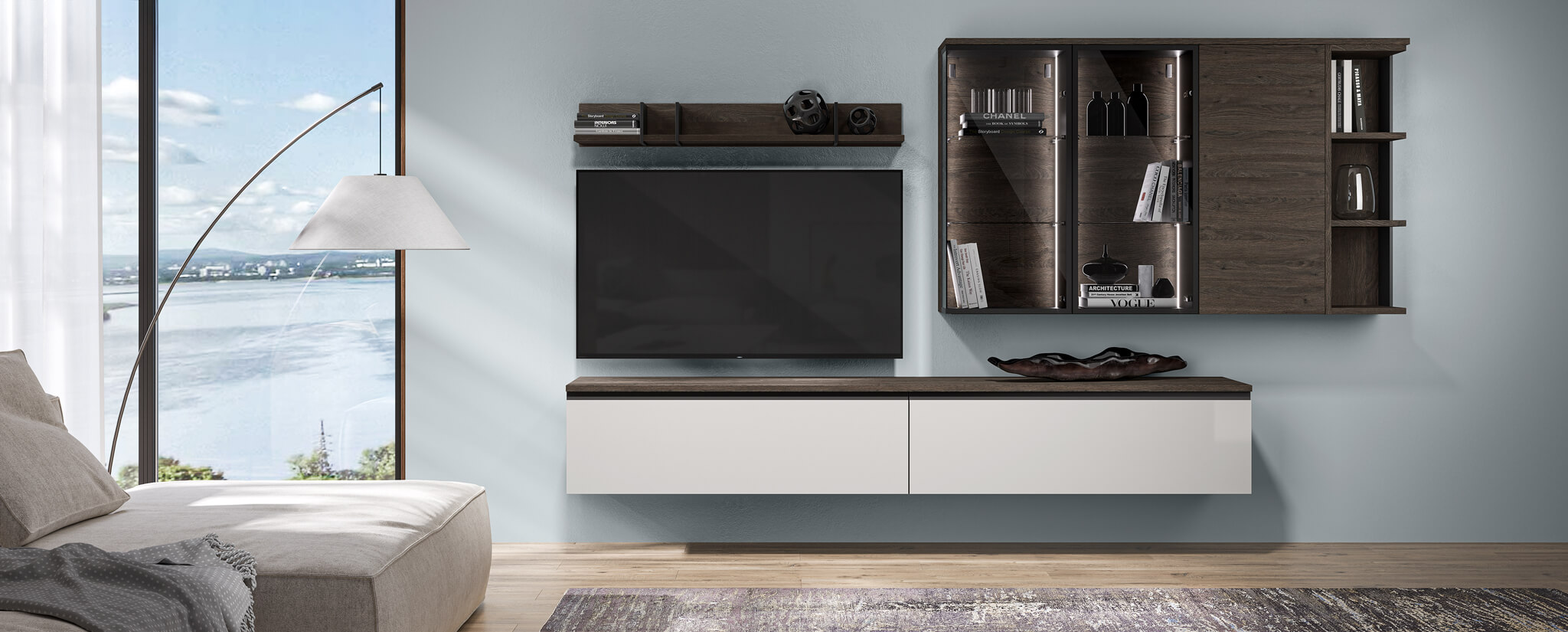 Гостиная BRUNO создана для тех, кто ценит интеллектуальные интерьерные решения в современном стиле: легкость и открытость, четкие линии, выразительные акценты, высокую функциональность. Природная текстура дуба, модные оттенки глянца и матовых поверхностей, тонированное стекло в дизайне этой коллекции объединяются благодаря графичным элементам из черного металла.