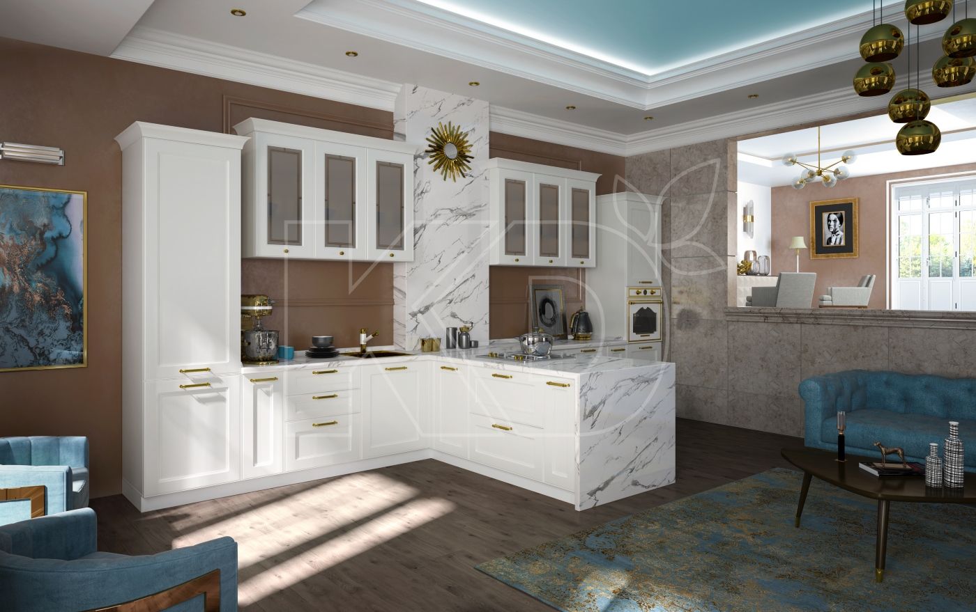 Классику ценят за ее близость к совершенству. Но истинные шедевры рождаются лишь когда к совершенным формам добавляют броские, нестандартные решения. Взгляните на «Адриану» и убедитесь сами. Эта кухня выглядит как эталон мебельной классики. Выверенные пропорции, роскошные позолоченные ручки, рамочные фасады из массива бука – каждая деталь, изгиб и штрих здесь сведены к абсолютной гармонии. Но эта гармония была наделена одной уникальной чертой и стала неповторимой.