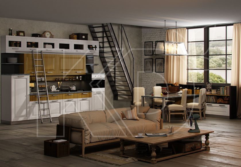 Учитывая все эти требования, специалисты компании «Кухонный Двор» разработали уникальную модель «Дита», аналогов которой пока еще нет в России. В гарнитуре совмещены несколько принципиально разных идей: классика и урбанистичность, компактность и функционализм. Такое смелое сочетание «жанров» делает образ модели современно-эклектичным. Обращает на себя внимание разноуровневость представленной компоновки модулей. Наряду с небольшими антресолями, составляющими верхний ярус модели, в центре композиции представлены вместительные элементы, оснащенные поворотными подъемниками AVENTOS HK усиленной мощности. Инновационная технология крепления элементов разного цвета позволила совместить их в одном фасаде.