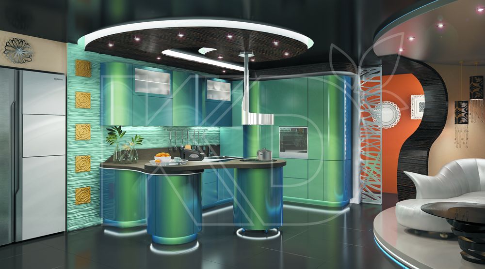 Яркая, эффектная и уверенная в себе! Модель кухонного гарнитура «Юлия» смело заявляет о себе, обращая внимание ценителей экстравагантного стиля. «Юлия» — это игра. Игра света, плавных линий и форм. Прямые и радиусные фасады, оригинальная встроенная подсветка, переливы цветовых бликов на фасадах, благодаря спецэффекту «Хамелеон», создают атмосферу космического пространства. А неоновая подсветка цоколей словно приподнимает гарнитур над землей, даря ощущение невесомости.