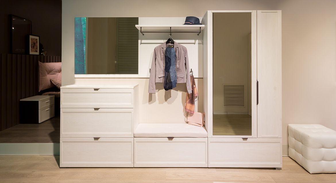 Набор элементов коллекции учитывает особенности типовых квартир, поэтому позволяет создать интерьер, используя по максимуму даже пространство самой маленькой прихожей. Здесь есть все для создания легких, парящих композиций или вместительных и функциональных систем хранения. Ручки и ножки заказываются отдельно, благодаря чему можно придать мебели индивидуальный стиль. Опционально доступны доводчики дверей и встроенные системы подсветки.