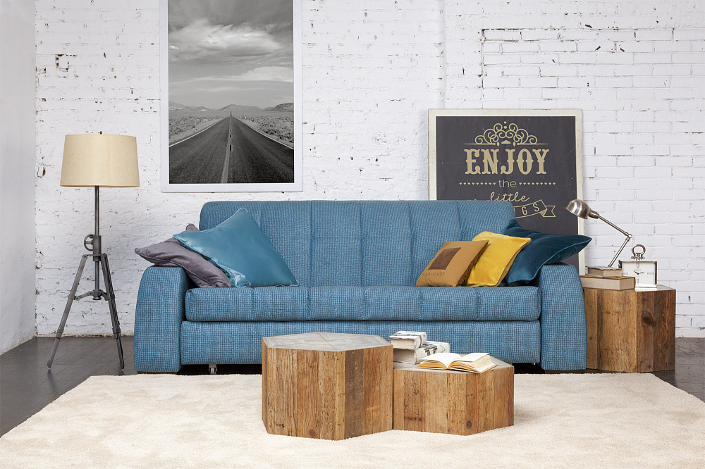 Заслуживает внимания и функциональность изделия. «Тристан» — это диван-аккордеон, который можно трансформировать в двуспальную кровать. Благодаря такой модели, гостиную при необходимости всегда можно превратить в спальню.