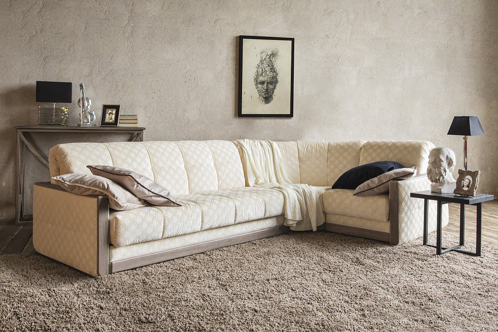 Полукруглая форма дивана делает его идеальным решением для эркеров. Кроме того, угловой Гудвин является функциональным раскладным диваном с практичным и удобным спальным местом. Внутри дивана установлен механизм аккордеон и ровный бесшовный двуспальным матрас.